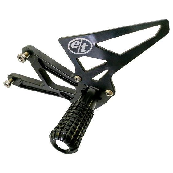 Compatible with stock quick shift sensor and configurable for GP or Standard shift pattern configuration.  Adjustable footpeg position over a range to suit riders of all sizes, abilities, and ergonomic preferences.  Offered in Hard Black anodizing only at this time.  Elevate your racecraft with Evol Technology Pro Rearsets for the BMW S1000RR.